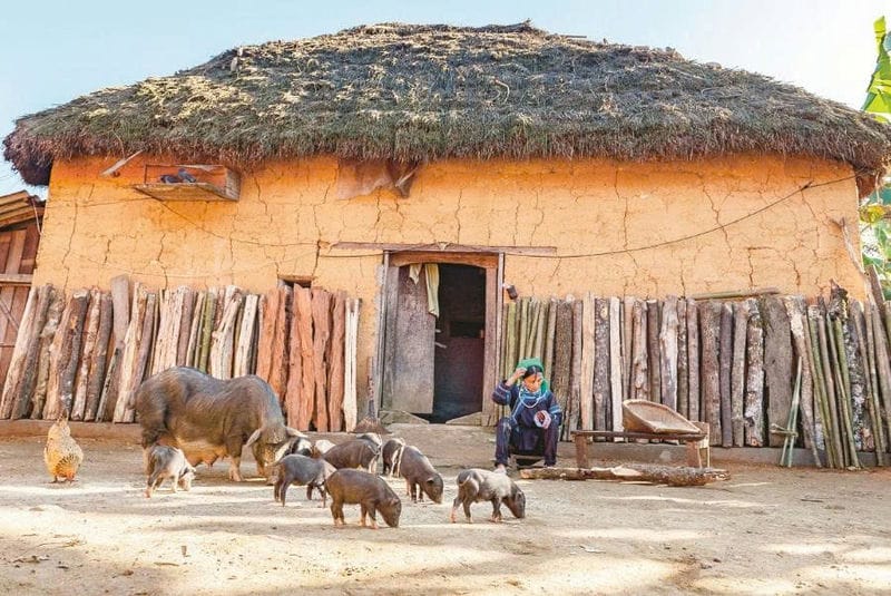 The roof is usually made from clay tiles or thatch, with wooden beams cut from local forests. Traditional Hmong beliefs emphasize that a house should be positioned with its front toward the mountain and its back to the water, a layout thought to bring harmony and good fortune. Each stone and timber used in construction is carefully selected, often carrying symbolic value and spiritual significance bestowed through traditional rites.