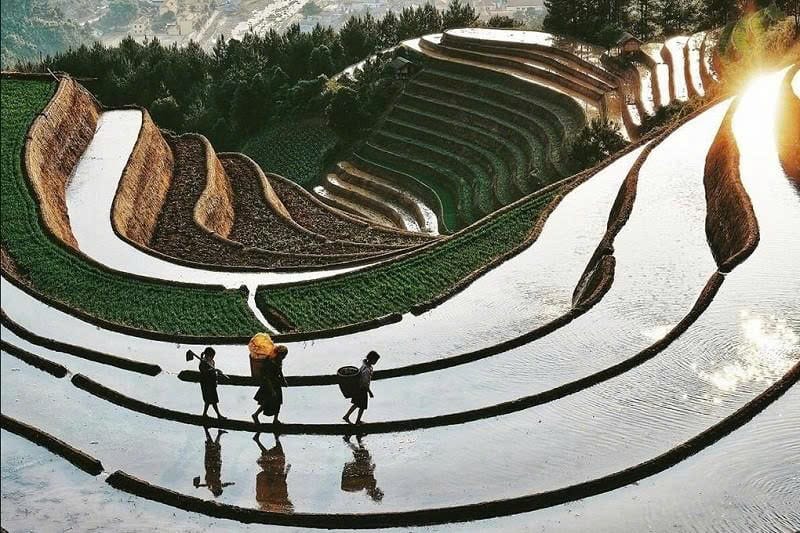 Each season paints a different picture. Come springtime, the rice terraces awaken in layers of fresh, tender green — a living canvas stretching across the hills. In summer, waterfalls swell, and the air carries the scent of tea flowers. Autumn blankets the hills in shimmering gold as harvest begins — a season alive with celebration and community warmth. When winter comes, the landscape softens under a veil of mist. Valleys fall silent, and each morning feels like a gentle whisper from the clouds.