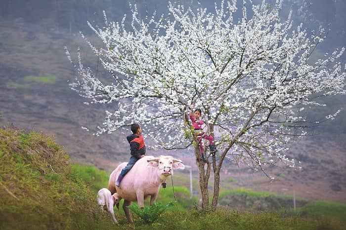 Typically takes place before the Lunar New Year, in turn of plum blossoms and peach blossoms made Ha Giang's beautiful as the local's smile among the rocky mountains.