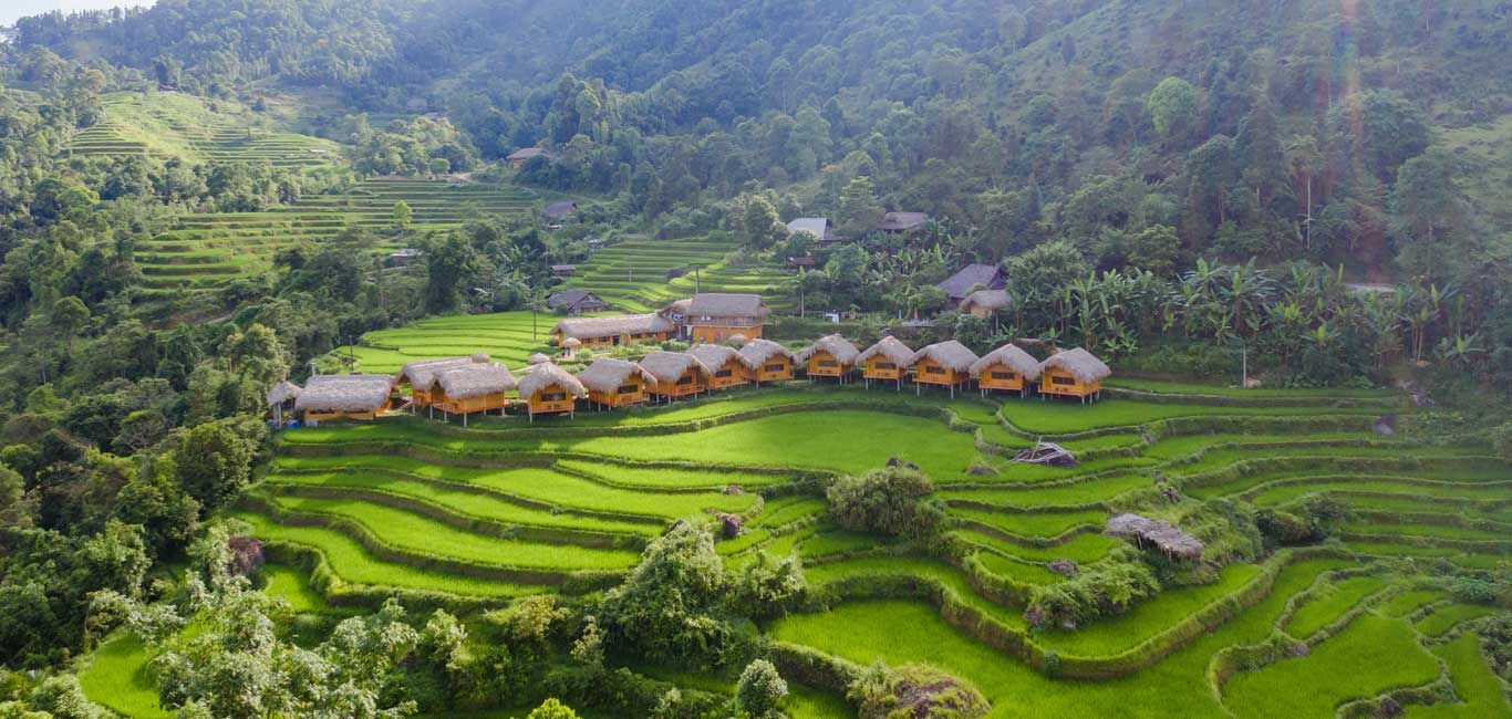 Hoang Su Phi Ecolodge is the best hotel in Ha Giang located at Nam Hong village of red Dao people - a community-based tourism site in Ha Giang. All bungalows are built on the side of the mountain range and on the terraced rice fiels. Each bungalow has 02 balconies offering breathtaking views over the green garden, valleys, mountains and terraced rice fields. Its bungalows are spacious, comfortable and well decorated with bambo and palm leaves that make you feel comfortable and closer to the nature. Beside Hoang Su Phi Ecolodge has a large restaurant offering local food and a massage room used the Red Dao people's herbal bath. Come to Hoang Su Phi Ecolodge to discover this beautiful region and stay in a comfortable accommodation : info@hoangsuphilodge.com or 0365 338 568 (Whatsapp, Zalo, Viber).